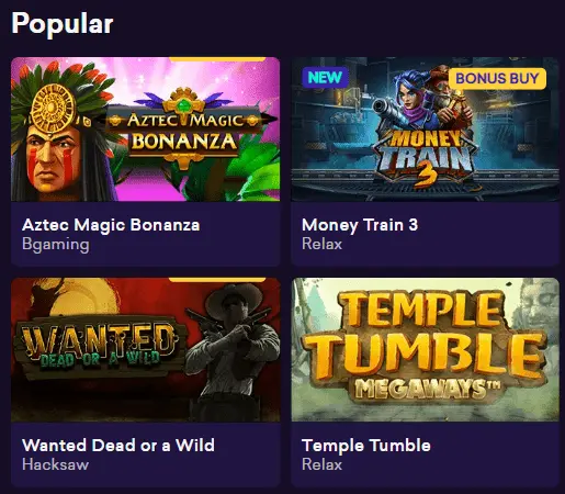 To access the slot section of the casino, click on the “Slots” button on the menu tab. It will take you directly to the slot collection lobby where you will find a sea of options to choose from. Also, you can use the search bar to locate the title by inputting the name or provider to filter out your results.